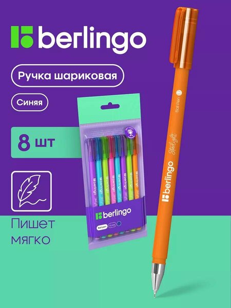 Шариковые ручки Starlight - идеальны для использования в офисе и школе! В наборе 8 ручек с синими чернилами на масляной основе. Круглый корпус представлен в ярких цветах и обеспечивает комфортный захват — кисть руки не устанет даже после длительного использования. А бархатистое Soft Touch покрытие создает дополнительный комфорт. Пластиковый клип поможет надежно закрепить изделие там, где это необходимо. Инновационная технология Smart Ink позволяет писать равномерно и легко за счет чернил пониженной вязкости. Это обеспечит мягкое письмо без усилий. Ручки многоразовые, они имеют возможность замены стержня! Диаметр пишущего узла составляет 0,7 мм, а толщина линии всего - 0,5 мм. Длина письма- 1000 м. Набор синих шариковых ручек Берлинго- гарантия долговечности и качества!