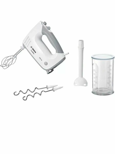 Bosch MFQ36440 — мощный миксер с чашей 3 л для замешивания теста, взбивания и смешивания ингредиентов Миксер Bosch MFQ36440 — это надежный и функциональный кухонный помощник с мощным мотором 450 Вт, который справляется с любыми задачами: от взбивания сливок и белков до замешивания густого теста и приготовления кремов. В комплекте — вращающаяся чаша объемом 3 литра, благодаря чему прибор можно использовать как стационарный миксер, освобождая руки во время приготовления. Прибор предлагает 5 скоростей и турборежим, что позволяет выбрать оптимальный режим для каждого рецепта. Насадки из нержавеющей стали (венчики и крюки) обеспечивают эффективную и долговечную работу, а система легкой установки насадок делает процесс максимально удобным. Миксер Bosch MFQ36440 отличается эргономичной ручкой с мягким покрытием SoftTouch, легким весом и низким уровнем шума. Съемные элементы можно мыть в посудомоечной машине, что упрощает уход. Идеальный выбор для домашних кулинаров и любителей выпечки — тихий, надежный, удобный и компактный миксер Bosch с высокой производительностью и качественной сборкой.