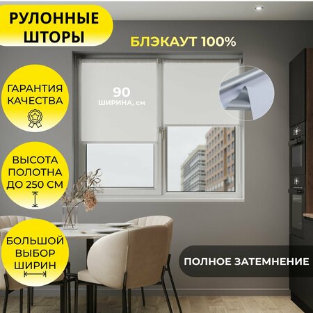 Рулонные шторы 90х270 см блэкаут белый, высота 270 см, на стену, на потолок / рулонные жалюзи на окно со светоотражающей подложкой для защиты от солнца, "MG 25"