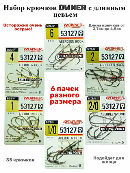 Рыболовный набор крючков owner с длинным цевьем №1 - №2/0