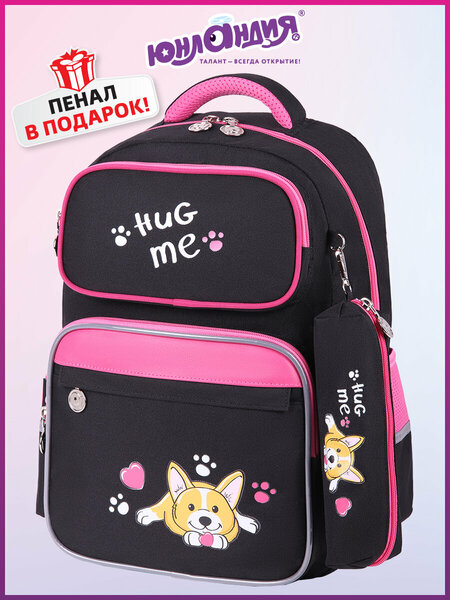 Представляем вашему вниманию рюкзак ЮНЛАНДИЯ COMPLETE с пеналом в комплекте, идеально подходящий для девочек 7-12 лет. Этот рюкзак школьный для девочки сочетает в себе практичность и стиль, что делает его незаменимым аксессуаром для школы. Эргономическая спинка обеспечивает комфорт и правильное распределение веса, а прочная конструкция гарантирует долговечность использования. Яркий дизайн рюкзака привлечет внимание и порадует вашу школьницу. Одно вместительное отделение, пять карманов и фиксатор для тетрадей позволяют организовать все необходимые школьные принадлежности. Светоотражающие элементы с четырех сторон обеспечивают безопасность в темное время суток. Рюкзак оснащен мягкими широкими регулируемыми лямками, усиленной ручкой и петелькой для подвешивания, что делает его удобным и функциональным. Жесткое откидное дно на липучке усиливает каркас рюкзака, добавляя еще больше прочности. Дополнительно в комплект входит стильный пенал-косметичка, который станет приятным подарком для вашей девочки. Выбирая рюкзак ЮНЛАНДИЯ COMPLETE, вы дарите вашему ребенку комфорт, безопасность и радость от использования качественного и красивого портфеля. • Пол ребенка: для девочек. • Серия: COMPLETE. • Дизайн: Hug me. • Возрастная группа: 7-12 лет. • Объем: 18 л. • Тип спинки: анатомическая, вентилируемая, формоустойчивая. • Количество отделений: 1. • Перегородка в основном отделении: да. • Количество карманов: 5. • Фронтальный карман: да. • Боковые карманы: да. • Светоотражающие элементы: да. • Наличие ручки для переноса: да. • Регулируемые лямки: да. • Вентилируемые лямки: да. • Материал спинки: спонжевые панели. • Материал дна: плотная ткань. • Основной цвет: черный. • Дополнительный цвет: розовый. • Узор: корги. • Высота: 42 см. • Ширина: 29 см. • Глубина: 14 см. • Вес: 0.5 кг. • Артикул производителя: 271414.