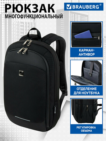 Рюкзак BRAUBERG FUNCTIONAL идеален для работы, учебы и путешествий. Современный дизайн и продуманные детали делают его отличным вариантом как рюкзак женский и мужской. С двумя вместительными отделениями и тремя карманами, включая защищенное отделение для ноутбука до 15,6", рюкзак обеспечивает надежное хранение и защиту гаджетов. Карман-антивор на спинке прекрасно подходит для хранения ценных вещей, а вентилируемая спинка обеспечивает комфорт при носке. Подарок мужчине или девушке, этот рюкзак станет незаменимым аксессуаром. Дополнительное отделение с карманом-органайзером удобно для пишущих принадлежностей, мобильного телефона и других вещей. Основное отделение увеличивается благодаря раскрытию молнии, что делает его отличным рюкзаком школьным. Изготовлен из качественного водоотталкивающего полиэстера, рюкзак легко чистится и долговечен. Багажная лента позволяет закрепить рюкзак на телескопической ручке чемодана, что идеально для путешествий. Будь то женский рюкзак для повседневного использования или мужской рюкзак для деловых поездок, этот рюкзак подходит для всех. Идеален как подарок школьнику, девочке или мальчику, станет стильным и практичным портфелем для всех возрастов. • Совместим с диагоналями экрана: 13", 14", 15". • Серия: FUNCTIONAL. • Тип рюкзака: универсальный. • Количество основных отделений: 2. • Количество карманов: 3 шт. • Количество карманов из эластичной сетки: 2 шт. • Количество лямок: 2 шт. • Вентилируемая спинка: да. • Внутренний органайзер: да. • Нагрудный ремешок: да. • Защита от воды: да. • Наличие колес: нет. • Цвет: черный. • Объем: 26 л. • Материал: полиэстер. • Высота: 44 см. • Ширина: 30 см. • Глубина: 20 см. • Вес: 0.75 кг. • Длина лямок: 89 см. • Артикул производителя: 272574.