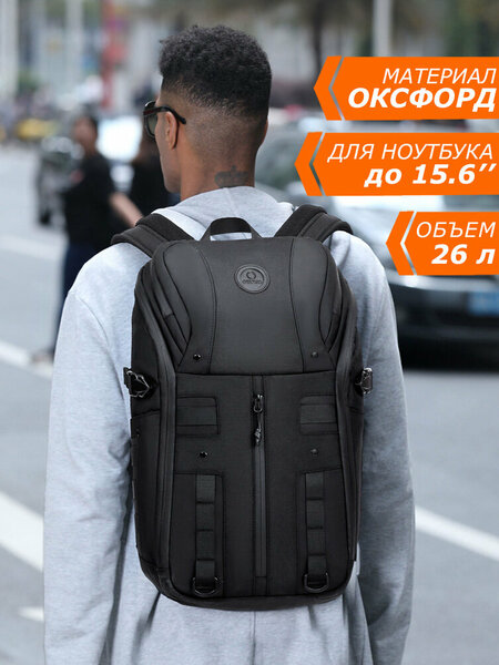 Рюкзак мужской городской дорожный Ozuko вместительный 26л, для ноутбука 15.6", непромокаемый, с потайным карманом, взрослый/подростковый, цвет черный