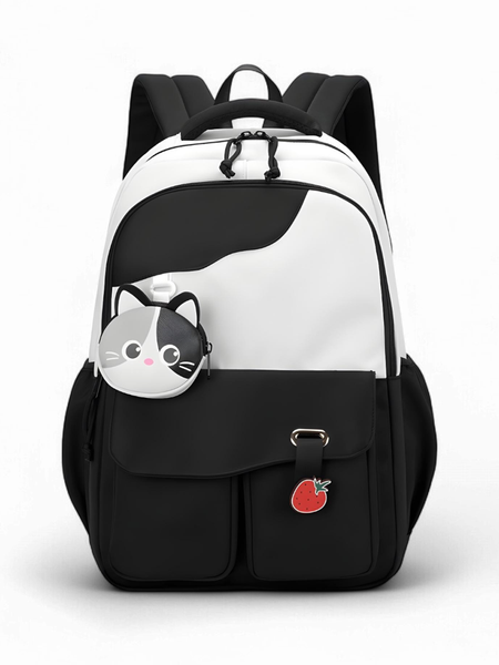 Рюкзак школьный для девочки подростка портфель черный белый в школу городской с кошельком