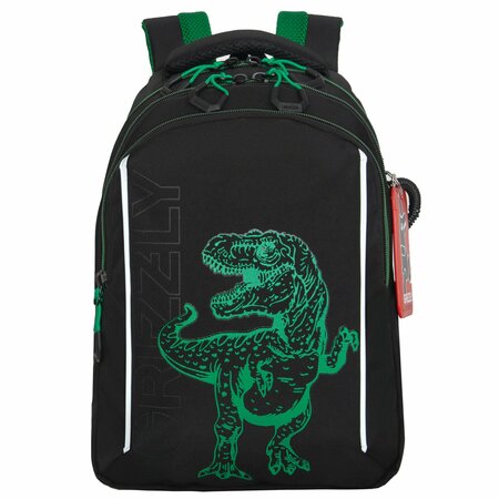 Рюкзак разработан для учащихся начальной и средней школы. Анатомическая дышащая спинка и удобные широкие лямки позволяют равномерно распределять нагрузку на спину и плечи. Также лямки снабжены дополнительной нагрудной стяжкой, чтобы снять и равномерно распределить нагрузку поясничного отдела и для того, чтобы рюкзак удобно и надежно держался на зимней объемной одежде. Материал портфеля с водо- и грязеотталкивающей пропиткой позволяет без труда очистить легкие загрязнения влажной тканью, при загрязнениях средней степени рекомендуется стирка в холодной воде температурой 30 градусов без отжима. Рюкзак очень хорошо оснащен, имеет три отделения для учебных пособий форматом А4, помогает организовать пространство внутри: отделить учебники от рабочих тетрадей, а также позволяет удобно и аккуратно хранить канцелярские принадлежности. В основном отделении есть карман для планшета или небольшого ноутбука 13". Дополнительное переднее отделение сумки оснащено съемным держателем для ключей и тремя карманами. Двунаправленные реверсные молнии с брендированными пуллерами на замках позволяют легко открывать и закрывать портфель в любую удобную сторону для ребёнка. У ранца удобная ручка для переноски, дополнительная ручка-петля и два боковых сетчатых кармана для бутылочки с водой. Светоотражающие элементы с 4-х сторон обеспечивают дополнительную безопасность в темное время суток. К ранцу прилагается обучающая брошюра по программе "GRIZZLY Здоровая Спина"!