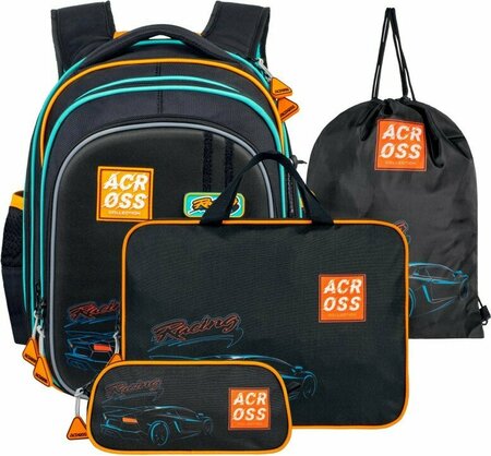 Размеры: 40 × 33 × 15 см Рюкзак школьный ACROSS 25-410-6 “Racing” (4 в 1)Рюкзак ACROSS 25-410-6 “Racing” – это стильный, удобный и вместительный школьный комплект для мальчиков, вдохновленный тематикой гоночных автомобилей. Благодаря яркому дизайну, эргономичной конструкции и функциональности, этот рюкзак станет отличным выбором для школьников, которые любят скорость, драйв и комфорт. Дизайн и стиль • Черно-оранжевая цветовая гамма с бирюзовыми акцентами. • Изображения спортивных суперкаров и динамичная надпись “Racing”. • Фирменные элементы бренда ACROSS и оригинальные декоративные бегунки на молниях. Комплектация (4 в 1) • Рюкзак – просторный, с ортопедической спинкой и удобными карманами. • Пенал – выполнен в едином стиле, идеально подходит для канцелярии. • Папка для тетрадей – защищает документы и тетради от замятия. • Сумка для сменной обуви – легкая, удобная, идеально дополняет комплект. Основные характеристики • Ортопедическая спинка с вентиляцией и анатомической поддержкой. • Мягкие регулируемые лямки для комфортного ношения. • Просторное основное отделение – легко помещает учебники, тетради и гаджеты. • Передний карман на молнии – удобен для хранения мелочей и канцелярии. • Боковые карманы – подходят для бутылки с водой или зонта. • Водоотталкивающая ткань, устойчивая к загрязнениям и износу. • Прочные молнии и надежная фурнитура от бренда ACROSS. • Светоотражающие элементы для безопасности ребенка в темное время суток. Преимущества • Яркий спортивный дизайн – идеален для поклонников скорости и суперкаров.• Эргономика и комфорт – снижает нагрузку на позвоночник. • Полный комплект – не нужно дополнительно покупать аксессуары. • Качественные материалы – долговечность, защита от влаги и повреждений. ACROSS 25-410-6 “Racing” – это идеальный выбор для школьников, которым важны стиль, удобство и надежность. Этот рюкзак поможет организовать учебные принадлежности, подчеркнет страсть к скорости и подарит комфорт в повседневном использовании.