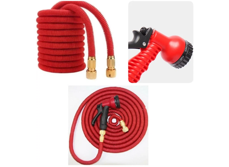 Чудо шланг Magic Garden 2.5 метров - это новая улучшенная версия шланга С металлическим соединением, что придает больше прочности, увеличенным в 5 раза по сравнению с обычным шлангом. Его секрет в усовершенствованных материалах и использованной технологии 3d-нано: прочное и гибкое внутреннее покрытие позволяет сжиматься и разжиматься в несколько раз, а новое износостойкое внешнее покрытие сделало его более устойчивым к внешним воздействиям и загрязнениям. При необходимости несколько шлангов можно соединить между собой. Изготовлен шланг из тканного полиэфирного полотна и латексной трубы, насадка-распылитель из прочного пластика. Главным достоинством поливочного шланга является его легкость и компактность. Шланг увеличивается в размерах при подаче воды, а при ее отключении уменьшается, становясь необычайно удобным для переноски и хранения. Благодаря уникальной конструкции шланга в процессе его использования не возникают изломы и скручивания. Шланг состоит из внутренней жесткой прослойки из двухслойного латекса и внешнего слоя из нейлона. Это универсальное приспособление. В комплекте идёт такой же поливочный пистолет, который работает в 5 разных режимах, но вот соединение стало не пластиковым, а металлическим, что придаёт большей прочности. Исходные состояние 2.5 метров — при растяжке 12 метров.