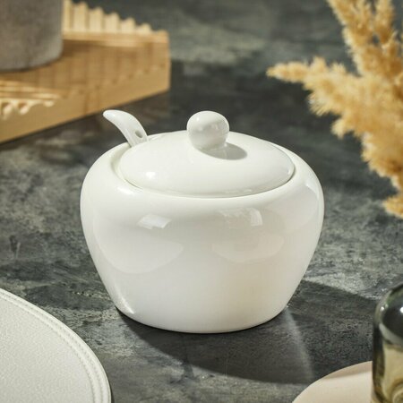 Сахарница Daniks с ложкой и крышкой — идеальное решение для хранения и подачи сахара. Эта стильная и функциональная ёмкость объёмом 420 мл изготовлена из высококачественной керамики, что гарантирует её долговечность и надёжность. Она идеально подходит для хранения сыпучих продуктов, таких как сахар и соль. Современный и элегантный дизайн сахарницы Daniks прекрасно впишется в интерьер любой кухни или столовой. Красивая форма и аккуратные линии создают гармоничный вид на столе. Сахарница предлагает функциональность, совмещая удобство использования со стильным оформлением. Удобная крышка сохраняет свежесть и аромат сахара, а ложка позволяет легко насыпать нужное количество в чашку. Благодаря этой удобной емкости, вы сможете организовать хранение продуктов на кухне более эффективно и стильно. Сахарница идеально подходит для сервировки, как праздничного застолья, так и ужина в тихом и уютном домашнем кругу. Хранение сахара в керамическом сосуде позволяет избежать влияния влаги и поддерживать свежесть продукта. Столовый инвентарь необходимо обновлять со временем для создания уюта дома. Декоративная сахарница станет не только практичным предметом утвари, но и ярким акцентом на вашем столе. Ещё её можно использовать в качестве баночки для меда, в качестве емкости для хранения различных сыпучих продуктов, солонки, конфетницы. Красиво подать варенье к завтраку. Соответствие всем экологическим нормам характеризует изделия торговой марки «Daniks» безопасными для потребителя.