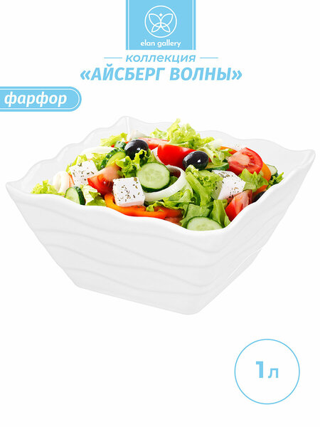 Салатник из серии «Айсберг волны» от Elan Gallery станет идеальным решением для любителей здорового питания и красивой сервировки стола. Размер ёмкости – 16х16х8 см, объём – 1 литр. Выполнен из высококачественного белого фарфора. Он не впитывает цвет продуктов и легко отмывается, благодаря чему надолго сохраняет свою белизну. Поверхность изделия украшают рельефные узоры в виде поперечных волн. Большая глубокая миска будет практичным вариантом для приготовления и подачи салатов, а также для свежих овощей и фруктов. Кроме того, она послужит для сервировки холодных закусок и гарниров, разнообразных сладостей и десертов. Используйте её в качестве конфетницы для уютного чаепития. Изысканный дизайн с ажурной каймой позволит салатнице гармонично дополнить интерьер любой кухни и столовой. Не рекомендуется применять абразивные моющие средства. Подходит для использования в микроволновой печи и посудомоечной машине. Поставляется в красивой картонной коробке – благодаря ей вам не потребуется дополнительная подарочная упаковка. Фарфоровая сервировочная посуда послужит оригинальным подарком для хозяйки, ценящей не только практичность, но и привлекательность. Серия «Айсберг волны» от бренда Элан Галерея станет украшением любого кухонного инвентаря и позволит собрать сервиз в едином стиле!