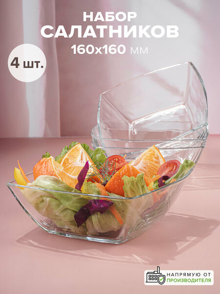 Салатники стеклянные квадратные 160х160 мм бренда Pasabahce, набор 4 шт. Салатницы изготовлены из натрий-кальций-силикатного стекла. Высота 55 мм. Объем 700 мл. Набор посуды поставляется в брендированной упаковке, что позволяет ему стать деальным подарком для ваших близких. Стеклянные миски можно мыть в ПММ. Квадратные салатники из прозрачного стекла пригодятся на любой кухне и будут уместны для сервировки стола на каждый день и на праздник. Пиалы из стекла подходят для приготовления блюд, смешивания продуктов и подачи салатов и закусок, овощей и фруктов, варенья и джема, меда и прочего. Такая посуда украсит собой сервировку вашего праздничного стола. Салатник из стекла - это отличный выбор для полезного и практичного подарка на любой праздник: новый год и Рождество, 8 марта и 23 февраля, 14 февраля и день рождения для мамы и жены, подруги и девушки, сестры и бабушки, ваших близких людей и родственников, коллег и друзей.