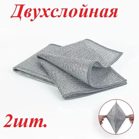 вухслойная металлическая салфетка для посуды , в наборе 2шт 1. Универсальное чистящее средство: Ощутите мощь этой проволочной салфетки для мытья посуды для эффективного удаления пятен и копоти с различных поверхностей. Компактные размеры и конструкция из металлической проволоки делают ее отличной для бытовой уборки, чистки щелей и многого другого. 2. Двойная функция "Влажная сушка": Благодаря мелкопористой конструкции и обильному образованию пены, эту бытовую салфетку можно использовать влажной для эффективной очистки посуды, кастрюль и сковородок. Кроме того, при сухом использовании она творит чудеса, что делает ее идеальной для чистки грилей, плит и многого другого. 3. Простота очистки: Проволочную салфетку для мытья посуды можно легко промыть водой, а ее функция подвешивания экономит пространство на кухне и облегчает дренаж. Держите ее под рукой, повесив на стену после использования, чтобы она оставалась чистой и доступной. 4. Узкая щелевая щетка: Щелевая щетка оснащена ультратонкой щетиной, которая значительно жестче зубной щетки, что позволяет без особых усилий удалять грязь даже из самых узких щелей. С легкостью создавайте более чистую и гигиеничную домашнюю обстановку. 5. Широкий спектр применения: Эта сетчатая салфетка подходит для протирания кухонной утвари, автомобилей, поверхностей из нержавеющей стали, бытовой техники, мебели и многого другого. Легко удаляет грязь в труднодоступных местах, даже в небольших отверстиях для бутылок.