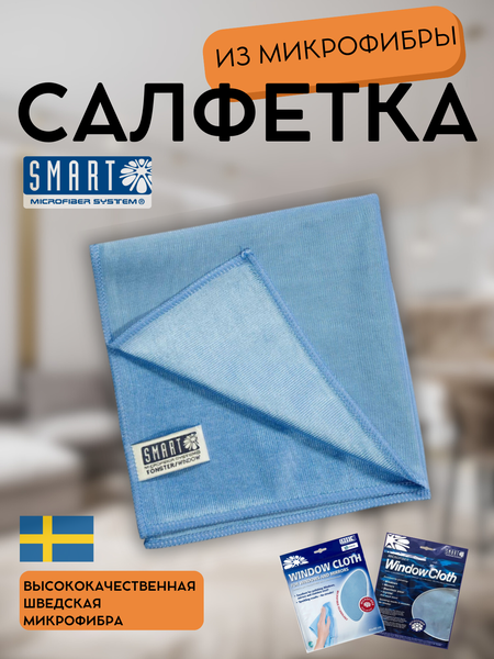 Салфетка для стекла Smart 40x40 из микрофибры - это незаменимый помощник для уборки дома. Она позволяет быстро, эффективно и без разводов очистить любые стеклянные и зеркальные поверхности. Уже более 20 лет салфетки Smart Microfiber System из микрофибры радуют своих покупателей безупречной чистотой стекол и зеркал. Забудьте о разводах и пятнах! Тряпка Смарт очистит ваши окна, зеркала и любые стеклянные поверхности за один проход, делая их идеально чистыми. Характеристики: Размер: 40х40 см Материал: микрофибра Плотность: 300 г/м² Цвет: голубой Страна-производитель: Швеция Преимущества: Эффективно удаляет загрязнения: благодаря микроскопическим волокнам салфетка отлично впитывает грязь, жир и влагу, не оставляя разводов. Не царапает поверхность: микрофибра - мягкий и деликатный материал, который не царапает даже самые чувствительные поверхности. Подходит для многократного использования: салфетку можно стирать в стиральной машине до 60°C. Универсальна: можно использовать для мытья окон, зеркал, хрусталя, кафеля, хромированных поверхностей и т. д. Салфетка Белый кот. Как использовать: Перед первым использованием постирайте салфетку с мылом в теплой воде. Слегка увлажните салфетку водой или моющим средством для стекол. Протрите поверхность салфеткой. При необходимости ополосните салфетку чистой водой и отожмите. Высушите поверхность сухой салфеткой. Салфетка Смарт 40х40см - это незаменимый помощник в любом доме. Она поможет вам быстро, легко и без усилий поддерживать чистоту и блеск всех стеклянных и зеркальных поверхностей.