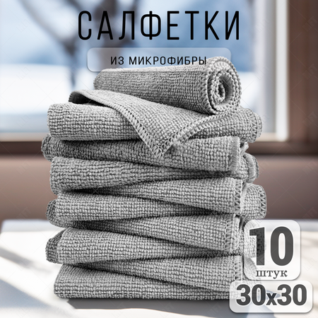 Салфетки для уборки из микрофибры универсальные 30х30 см, 10 шт. в упаковке, цвет серый
