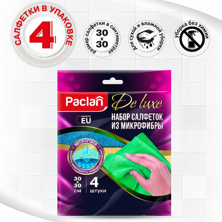 Салфетки для уборки микрофибра тряпки, 4 шт, 30 х 30 см, Paclan