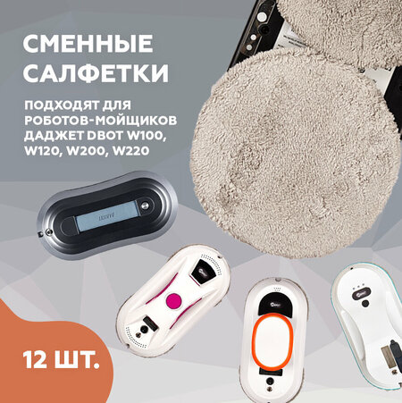 Салфетки из микрофибры для робота мойщика окон Даджет dBot W100/W120/W140/W200/W220, 12шт.