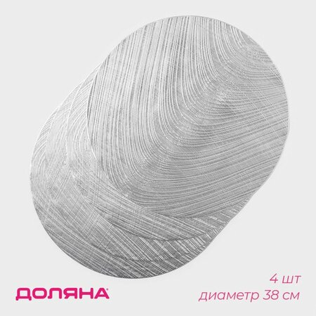 Салфетки сервировочные Доляна «Волна» представляют собой элегантный и практичный аксессуар для вашего стола. В комплекте вы получаете 4 круглые салфетки диаметром 38 см, выполненные в серебристом цвете. Салфетки изготовлены из ПВХ, что обеспечивает их долговечность и устойчивость к износу. Материал не впитывает влагу и запахи, что делает его отличным выбором для повседневного использования. Особенностью салфеток является наличие антискользящего покрытия. Это обеспечивает безопасность использования, предотвращая случайное перемещение посуды и столовых приборов. Салфетки имеют ажурный дизайн, что придает им изысканный и стильный вид. Резные элементы добавляют оригинальности и делают их отличным выбором для любого стола. Салфетки сервировочные Доляна «Волна» станут прекрасным дополнением к вашему столу и подчеркнут ваш вкус и стиль.