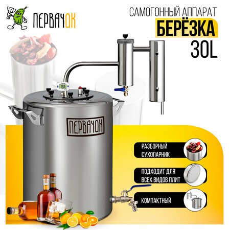 Самогонный аппарат "ПервачОк" Берёзка, 30 литров, бытовой дистиллятор с сухопарником