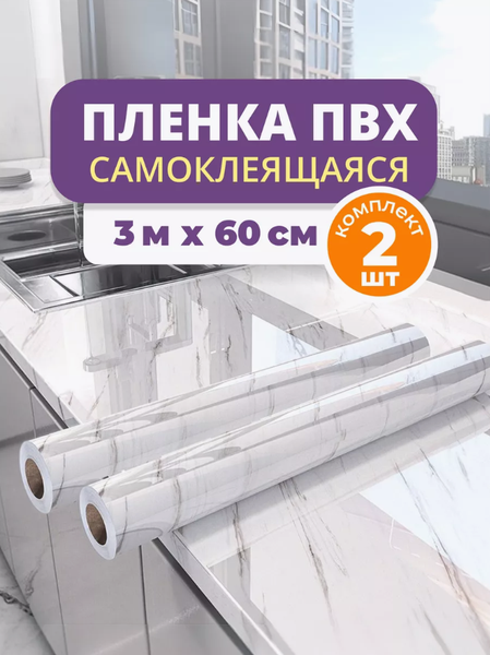 Выгодный комплект из двух рулонов. Трудно представить бюджетное обновление интерьерного дизайна без уникальной и практичной самоклеящейся пленки для мебели и кухни под камень. Дизайн выполнен под светло бело серый мрамор, а сама она изготовлена из надежной ПВХ-пленки и подходит для защиты стен, столов, столешниц и кухонного фартука. Её прекрасно помогает защитить столешницу и мебель от воздействия жира, загрязнения и царапин. Самоклейка без труда применяется для обклейки ящиков в вашей кухне или комнате. Она представляет собой универсальную основу из фольги с алюминиевой поверхностью, которую можно обклеить шкафы, подоконники и т. д. В зависимости от ваших потребностей, она декорирет под мрамор подойдет для оклейки любых мебельных поверхностей. Она подходит также для кухни, ванной и мастерской. Также она имеет невероятную водостойкость и прочность, а также не требует дополнительного клея. Благодаря алюминиевому клейкому слою, непросвечивается и идеально подходит для столешниц, ящиков и других поверхностей в вашем доме. Таким образом, вы защитите свою мебель и кухню от повреждений. Наш товар имеет непрозрачный фольгированный слой для защиты и долгой службы, благодаря этому она легко клеится и скрывает мелкие неровности. Так же ее можно использовать как моющие обои. Внимание! Каждый рулон уникальный и имеет незначительные особенности оттенков и рисунка. Размер рулона 300 см х 60 см, толщина 3,5 мкм, плотность клея 12-14 г/м2 обеспечивается надежное приклеивание. Желаем Вам приятных покупок!