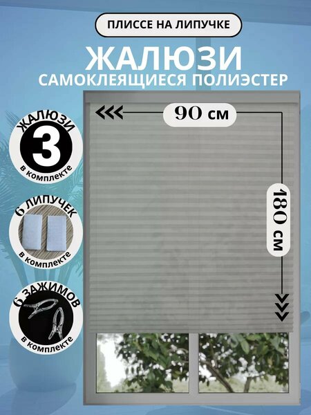 Жалюзи шторы тканевые на липкой ленте для дачи на окно. С учетом плиссе они идут от 120 до 140 см! Мы указываем длину изделия в растянутом виде 180 см. Самоклеящиеся жалюзи плиссе на окна для кухни 90 см 3 шт изготовлены из 100% полиэстера. Они являются отличной альтернативой классическим вертикальным жалюзи и тюлям. Их так же можно использовать во время ремонта. Так же они защитят вашу рассаду от солнечных лучей. Они однотонные на них нет цветочного принта. Они затемняют комнату заменяя занавески. Они более долговечны, чем бумажные. Горизонтальные шторы можно использовать в офисе и детских садах. Они обработаны специальным составом, который защищает от пыли, заломов. Их можно приклеивать на ровную обезжиренную поверхность. Они мягко рассеивают свет. Их очень легко и быстро установить. В комплекте имеются аксессуары для них - пластиковые зажимы (6), позволяющие регулировать длину штор. Так же есть липучки шесть штук.