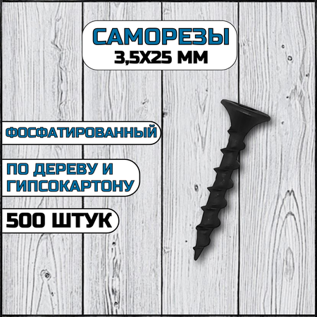 Саморезы по дереву и гипсокартону 3,5х25 мм черные в комплекте 500 штук. Саморезы изготовлены из углеродистой стали, что обеспечивает их прочность и долговечность. После процесса фосфатирования они не подвергаются коррозии и устойчивы к воздействию неблагоприятных факторов окружающей среды. Острый наконечник и крупный шаг резьбы под биту PH2 обеспечивают быстрое и надежное крепление. Потайная головка самореза позволяет выполнить скрытое крепление, что придает конструкции эстетичный вид. Саморезы подходят для наружного и внутреннего применения, что делает их незаменимыми при выполнении бытового ремонта, сборке и установке различных конструкций. В комплекте 500 штук саморезов, что позволяет выполнить большой объем работ. Диаметр резьбы составляет 3,5 мм, а длина изделия – 25 мм. Выбирая саморезы по дереву и гипсокартону 3,5х25 мм черные в комплекте 500 штук, вы получаете качественный и надежный инструмент для выполнения различных строительных и ремонтных работ.