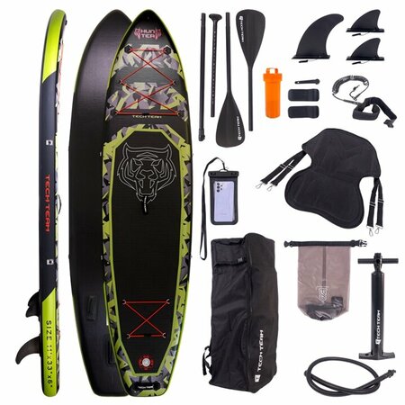 Сапборд TechTeam Hunter - продвинутая модель повышенной грузоподьемности, следующий этап развития популярной модели Funwater Honor. В отличие от своих "младших" коллег, он имеет увеличенную на 15 см длину, что делает его более устойчивым и позволяет перевозить пассажиров общим весом до 150 кг. При изготовлении использован новый ПВХ-материал высокой плотности, на 35% легче аналогов. Корпус доски в результате стал легче по весу и более износостойким. Сап выполнен в двух вариантах камуфляжной расцветки позволяющей меньше выделяться на природном ландшафте во время туристических прогулок. В модели целых две карго-системы (багажника) - четырехточечная на корме и шеститочечная на носу. Очень удобно, что в передней части доски размещено крепление для Go-Pro, сохраняющей эффектные кадры путешествий. В комплект входит сидение со спинкой - замечательное решение для длительных походов, а весло "два-в-одном" для плавания сидя, легко превращается из классического - в каячное (двухлопастное). Модель отлично подойдет для прогулок по воде, путешествий, фитнеса и занятий йогой. Габариты - 335x83x15 см (11'х33"х6") Грузоподьемность - до 150 кг Материал - многослойный PVC В сапборде использована MSL-технология - на базовый слой при высоком давлении и температуре крепиться второй слой армированного ПВХ. Боковые части лодки также усиливаются кантом. В результате получается единая жесткая конструкция сочетающая в себе легкость однослойных и надежность двухслойных сапбордов. Комплектация: • SUP-доска • Весло регулируемое алюминиевое (разборное, трехсекционное) • Насос двойного действия с манометром • Три съемных плавника • Ремонтный комплект • Рюкзак для SUP доски • Страховочный шнур (лиш) • Защитный чехол для телефона • Водонепроницаемый мешок для вещей 10 л • Сиденье с 4-мя креплениями