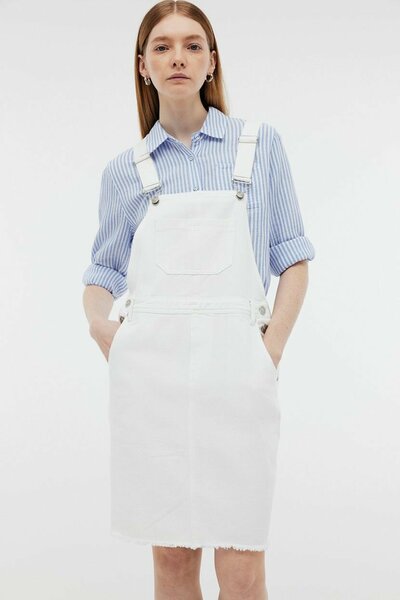 Классический джинсовый сарафан - настоящий хит сезона. Эту модель можно комбинировать с футболками и лонгсливами. Свободный прямой силуэт подарит вам удобство и комфорт. Лёгкий винтажный эффект материала делает его более интересным и стильным. В составе только натуральный хлопок - мягкий и гипоаллергенный. Сарафан застёгивается на пуговицы-болты по бокам. Бретели регулируются по длине.