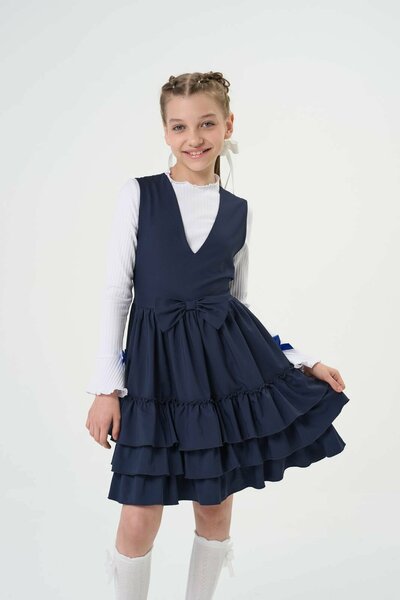 Сарафан Daniele Patrici в тёмно-синем цвете — с прилегающим силуэтом и застёжкой-молнией Создан для школы: подчёркивает фигуру и сохраняет комфорт в течение всего дня. Модель выполнена из ткани с 65 % хлопка, 30 % вискозы и 5 % эластана. Подкладка отсутствует. Силуэт — прилегающий; благодаря эластичности ткани изделие садится точно по фигуре и не стесняет движений. Застёжка-молния делает модель практичной, а вырез «каре» добавляет строгости. Ткань дышит, хорошо переносит частые стирки и остаётся аккуратной в течение дня. Цвет нейтральный и универсальный — подходит для школьной формы любого типа. Детали: прилегающий силуэт, застёжка-молния, вырез «каре», без подкладки. Такой предмет станет ключевым элементом гардероба и поможет выразить индивидуальность!