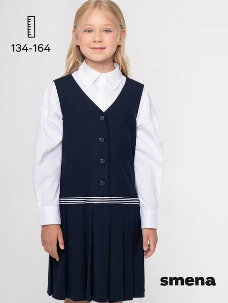 Сарафан школьный из износостойкой и устойчивой к смятию костюмной поливискозы идеально подходит в качестве школьной формы для девочек. Сарафан школьный для девочки размера Plus Size для полных детей. Сарафан А-образного силуэта в романтичном стиле с отрезной по линии талии юбкой со встречными складками из износостойкой поливискозы. Линия талии занижена. Сарафан для девочки школьный дополнен несъемным поясом контрастного цвета. Застегивается на пуговицы по центру лифа. Вырез горловины V-образной формы. Сарафан школьный для подростков отлично сочетается с блузками, водолазками, обувью и аксессуарами. Сарафан в школу для девочки подойдет на выпускной и изготовлен с любовью к деталям и идеально подойдет для особых моментов. Поливискоза обладает высокой прочностью и износостойкостью, что позволяет изделию долго сохранять целостность и форму даже при активном использовании в школьной обстановке. Ткань обладает хорошей эластичностью добавляя комфорт. Поливискоза очень легко стирается, быстро высыхает и не скатывается после многократной стирки. Это особенно важно для школьной одежды, которая часто подвергается загрязнениям. Уважаемые покупатели, на фото в графе "Размер smena" указан рост (первая цифра) и обхват груди (вторая цифра). Для более правильного выбора размера, пожалуйста, обращайте внимание на эти два параметра.