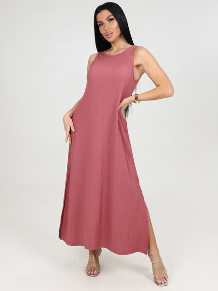 Женский сарафан Home Style свободного А-силуэта выполнен из однотонного трикотажного полотна - жатка, 100% полиэстер. Важно, при выборе размера, ориентируйтесь размерной сетке производителя, замеры выполнены готового изделия! Сарафан имеет длину до середины икры-миди. Горловина круглая окантована узким кантом. Сарафан без рукавов, проймы также оформлены узким кантом. Карманов нет. Спинка имеет средний шов. В боковых швах полочки и спинки, внизу, расположены разрезы. Низ сарафана обработан швом вподгибку. Ткань не просвечивает, в рубчик, имеет хорошие стрейчевые свойства и растяжимость, быстро сохнет, очень комфортна при носке.