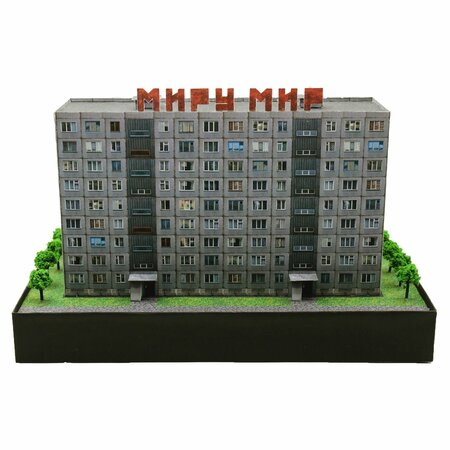 Дом из детства , панелька, это тот самый дом , где жил каждый из нас, когда начинаются школьные каникулы, зеленеют деревья и ты бежишь во двор в шортах вдыхая аромат лета, свободы и безмятежности и вся жизнь еще впереди! Теперь такой дом легко сделать своими руками! 3D Панельный дом - увлекательный конструктор, который поможет проникнуться атмосферой спальных районов постсоветского пространства, а актуальная на все времена надпись добавит конструктору оригинальности. Детали конструктора выполнены из качественного плотного картона. Деревья и люди из пластика(если вы выбрали вариант с фигурками людей) а во внутреннюю часть основания устанавливается специальный вкладыш из пенопласта. Преимущества: • Высокая детализация • Круто выглядит в готовом виде • Оригинальный и необычный подарок на праздник для тех, кого уже нечем удивить • Подойдет как взрослым так и детям (Взрослые собирают с таким же удовольствием, как и дети, не оторвешь) • Интересная и требующая терпения сборка В комплекте: 3Д пазл - конструктор, инструкция с фотографиями и описанием процесса сборки, упаковка.