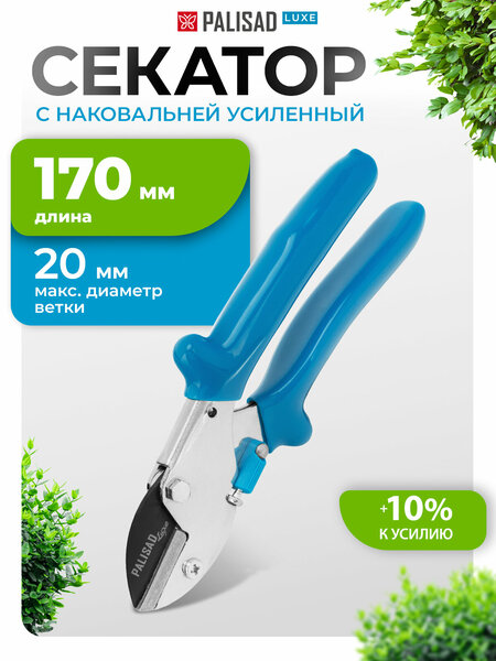 Усиленный секатор с наковальней Palisad Luxe 605235 длиной 170 мм, с рукоятками в ПВХ-оболочке, используется для срезания сухих и увядших ветвей диаметром до 20 мм. Опорная наковальня облегчает фиксацию ветки во время обрезки. Тефлоновое покрытие рабочего лезвия облегчает рез. Шарнирный механизм увеличивает силу сжатия на 10%, благодаря чему секатор успешно справляется с твердой древесиной. Инструмент будет полезен для ухода за дачей и садом.