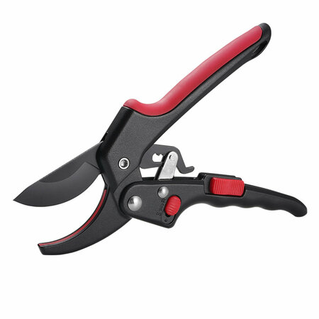 Садовый секатор служит для обрезания сучков, веток, кустарников, цветов, сорняков и др. растений. Позволяет быстро и без усилий выполнять работу на садовых, дачных, придомовых участках. Рукоятки из двухкомпонентного пластика и прорезиненного покрытия обеспечивают удобный хват и длительную, безопасную работу без переутомления рук. Секатор имеет 2 режима работы, с храповым механизмом и без. Лезвие имеет тефлоновое покрытие для более мягкого реза и легкой чистке инструмента. Садовые кусачки оснащены замком-фиксатором в закрытом положении, благодаря которому удобно и безопасно хранить и транспортировать инструмент. Секатор садовый с храповым механизмом станет незаменимым помощником в саду как для профессионала, так и для начинающего садовода, обеспечивая быстрое и качественное срезание веток. Вес - 195 г. Длина - 200 мм.