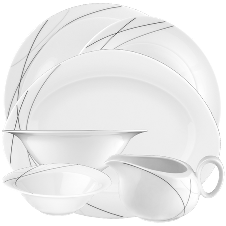 В набор входит: 6 х тарелка для супа 23 см; 6 х тарелка обеденная 28 см; 1 х соусник 0,6 л; 1 х пиала 21 см; 1 х пиала 24 см; 1 х овальная тарелка 31 см. Коллекция Trio — это комбинация оригинальной формы и высококлассной функциональности от немецкого производителя посуды Seltmann. Треугольная форма изделий, постепенно переходящая в мягкие округлости, стала результатом высокого мастерства и эстетического вкуса дизайнеров серии. Trio образует замечательную связь между романтической и технической эстетикой посуды и отвечает самым высоким стандартам сервировки стола. Широкий ассортимент цветовой палитры позволяет креативно подойти к оформлению стола. Инновационные технологии производства в сочетании с вековыми традициями и наработками компании помогают достигать совершенного результата. Именно поэтому коллекция отличается прекрасным качеством, функциональностью и великолепным внешним видом. Эта изящная коллекция - нетривиальный элемент декора, позволяющий придать сервировке и интерьеру особый стиль и очарование. Все изделия серии можно использовать в посудомоечной машине и микроволновке.