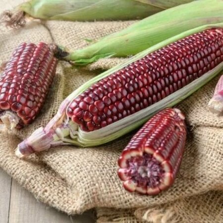 Красная кукуруза не только очень вкусная, но и полезная! Цвет и лечебные свойства обусловлены высоким содержанием антоцианов. Гибрид раннего срока созревания. Отлично формирует урожай в средней полосе. На кустах, высотой 2-2,5 м, созревают початки, длиной 20-22 см, толщиной 4-6 см и массой 300-500 г, с зернами интенсивного темно-бордового цвета. Вкус вареной и запеченной кукурузы сладкий с насыщенным ароматом. Для получения раннего урожая рекомендуется выращивать через рассаду. При высадке в грунт рассаду размещают на плодородных, дренированных почвах легкого мехсостава, с нейтральной кислотностью. Молодые растения после дождя или полива слегка окучивают для образования дополнительных корней в нижней части стебля.