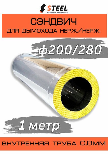 Сэндвич - это двухстенная труба, в которой между внутренней и наружной трубами находится теплоизолирующий материал. Сэндвич дымоход более пожаробезопасен, чем дымоход из голых труб. В дымоходах, состоящих из сэндвичей, меньшее образуется конденсата, по сравнению с одностенными дымоходами. Сэндвичи предназначены для банных и отопительных печей, котлов, работающих на твёрдом топливе, а также для печей, работающих на газе. Стыковка С другими производителями дымоходов НЕ гарантирована!