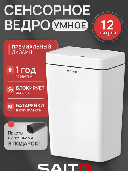 Мусорное ведро сенсорное SAITO - это современное и удобное решение для поддержания чистоты и порядка в вашем доме. Благодаря умной системе открывания, вам достаточно провести рукой у крышки, и она автоматически откроется. Это позволяет избежать прямого контакта с урной и сохранять руки чистыми. Мусорное ведро выполнено из прочного пластика, устойчивого к сколам, царапинам и другим внешним повреждениям. Объем ведра составляет 12 литров, что позволяет вместить достаточное количество мусора. Прямоугольная форма ведра легко поместится между предметами интерьера и хорошо встанет в узкие пространства. Крышка с сенсорным датчиком надежно запирает все ароматы, а благодаря прочной крышке, удерживает их там до тех пор, пока вы не решите избавиться от них. В комплект мусорного ведра с крышко SAITO входят батарейки АА и держатель для мусорных пакетов, что позволяет сразу начать использование ведра. Ведро имеет белый цвет, который легко впишется в любой дизайн. Выбирая мусорное ведро сенсорное SAITO, вы получаете не только стильный и практичный аксессуар для вашего дома, но и удобство и комфорт в использовании. Вы можете использовать умное мусорное ведро как: мусорное ведро для кухни, мусорное ведро для туалета