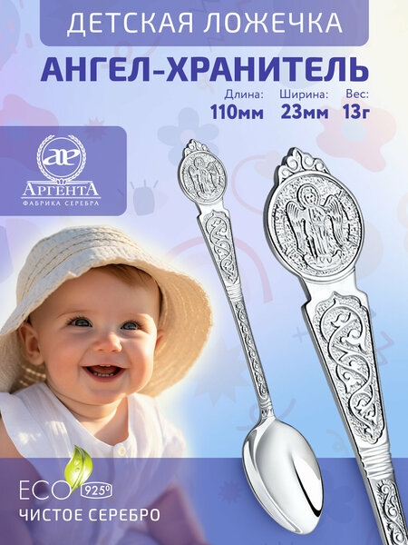 Ложка "Ангел-Хранитель" из коллекции серебряных ложек 925 пробы от фабрики серебра "АргентА". Ложка чайная/кофейная "Ангел-Хранитель" выполнена из серебра 925 пробы, что гарантирует высокое качество и долговечность изделия. Это делает ее не только прекрасным подарком, но и надежным столовым прибором, который будет служить вам долгие годы. В коллекции ложек с православной тематикой запечатлены самые известные и почитаемые в России образы святых, такие как Николай Чудотворец, Св. Матрона Московская, Казанская Божья Матерь и Ангел Хранитель. Особенностью этой ложки является ее православный образ - Ангел-Хранитель. Это делает ее не просто столовым прибором, но и символом защиты и помощи в любых жизненных ситуациях. Такую ложечку можно подарить девочке, мальчику, сыну, дочери, родителям, бабушке, дедушке, близким людям. Наша ложка отлично подойдет для приема лекарств. Ложка универсальная "Ангел-Хранитель" - это не просто столовый прибор, это символ веры и духовности, который станет вашим постоянным спутником и защитником. Подарите ложечку близкому и дорогому вам человеку на крещение, рождество, Новый год, на православный праздник Пасхи, день рождения, 8 марта или просто так без повода.