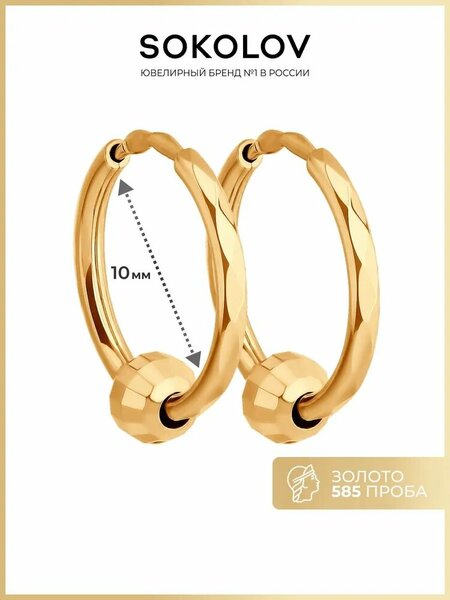 Серьги конго золотые женские 585 пробы SOKOLOV, ювелирные украшения кольца с алмазной гранью это изделие, которое подчеркнет вашу индивидуальность и придаст вам особый шарм. Бренд SOKOLOV гарантирует высокое качество и безупречный дизайн каждой пары серег. Сережки женские золотые - это очень элегантные украшения, которые прекрасно подходят для вечерних выходов или повседневных образов. Их стильный дизайн привлекает внимание окружающих и добавляет особую изысканность вашему образу. Золотые серьги 585 женские обладают особой прочностью и стойкостью. Цвет золота придает серьгам особую теплоту и роскошь. Благодаря своей универсальности, необычные серьги подходят для любого возраста и стиля. Дизайнерские сережки отлично смотрятся как на молодых девушках, подростках, так и на женщинах более зрелого возраста. Удобный замок на золотых серьгах Соколов обеспечивает надежное крепление сережек на месте даже при активном движении. Вы можете быть уверены, что ваше украшение останется на месте, даже при ежедневном ношении. Ювелирные изделия из золота давно завоевали популярность у женщин и девушек. Это не только стильный аксессуар, но и символ роскоши и успеха. Минималистичные украшения из красного золота 585 пробы бренда SOKOLOV, вы подчеркнете свою индивидуальность и элегантность. Женские серьги из красного золота 585 пробы отличный выбор для всех девушек и женщин. Они будут стильным дополнением к вашему гардеробу и подчеркнут ваш неповторимый стиль. Украшения комплектуются с подарочной упаковкой, идеально подходят для подарка любимой женщине и девушке, девочке на день рождения, 8 марта, день всех влюбленных или любой другой повод. Вес товара, указанного в карточке, является средним и может отличаться от фактического. Значение веса на фото и в характеристиках являются примерными и могут отличаться от фактического. Чтобы украшение радовало Вас своей красотой бесконечно долго, рекомендуем избегать попадания на него агрессивных химических средств. Гарантийный срок для ювелирных изделий составляет 6 календарных месяцев, и исчисляется со дня передачи изделия потребителю.