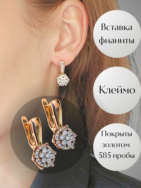 Бижутерия серьги женские из ювелирного сплава (медзолото) не темнеет, не облезает, не вызывает аллергии. Классические серьги украшены фианитами белого цвета. Длина серьги- 17 мм, диамтр цветка- 10 мм, модель застежки- английский замок ( внимание! при транспортировке замок может быть ослаблен это НЕ брак-подожмите дужку). Классические серьги подходят для всех девушек и женщин на каждый день и для особого случая. Подарок на День Рождения, презент без повода, сюрприз. Серьги под золото прекрасно сочетаются с ювелирными изделиями. золотой серьги в уши, бижутерия Xuping, серьги длинные висячие, сережки под золото.