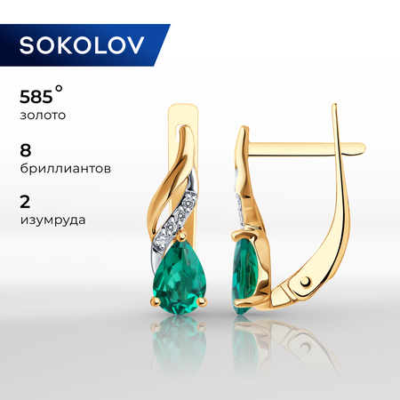 Серьги золотые женские 585 пробы SOKOLOV, ювелирные украшения с бриллиантами и гидротермальными изумрудами это изделие, которое подчеркнет вашу индивидуальность и придаст вам особый шарм. Бренд SOKOLOV гарантирует высокое качество и безупречный дизайн каждой пары серег. Сережки женские золотые - это очень элегантные украшения, которые прекрасно подходят для вечерних выходов или повседневных образов. Их стильный дизайн и блеск камня привлекают внимание окружающих и добавляют особую изысканность вашему образу. Золотые серьги 585 женские обладают особой прочностью и стойкостью. Цвет золота придает серьгам особую теплоту и роскошь. Благодаря своей универсальности, необычные серьги подходят для любого возраста и стиля. Дизайнерские сережки отлично смотрятся как на молодых девушках, подростках, так и на женщинах более зрелого возраста. Удобный замок на золотых серьгах Соколов обеспечивает надежное крепление сережек на месте даже при активном движении. Вы можете быть уверены, что ваше украшение останется на месте, даже при ежедневном ношении. Ювелирные изделия из золота давно завоевали популярность у женщин и девушек. Это не только стильный аксессуар, но и символ роскоши и успеха. Минималистичные украшения из красного золота 585 пробы бренда SOKOLOV, вы подчеркнете свою индивидуальность и элегантность. Женские серьги из красного золота 585 пробы отличный выбор для всех девушек и женщин. Они будут стильным дополнением к вашему гардеробу и подчеркнут ваш неповторимый стиль. Украшения комплектуются с подарочной упаковкой, идеально подходят для подарка любимой женщине и девушке, девочке на день рождения, 8 марта, день всех влюбленных или любой другой повод. Вес товара, указанного в карточке, является средним и может отличаться от фактического. Значение веса на фото и в характеристиках являются примерными и могут отличаться от фактического. Чтобы украшение радовало Вас своей красотой бесконечно долго, рекомендуем избегать попадания на него агрессивных химических средств. Гарантийный срок для ювелирных изделий составляет 6 календарных месяцев, и исчисляется со дня передачи изделия потребителю.