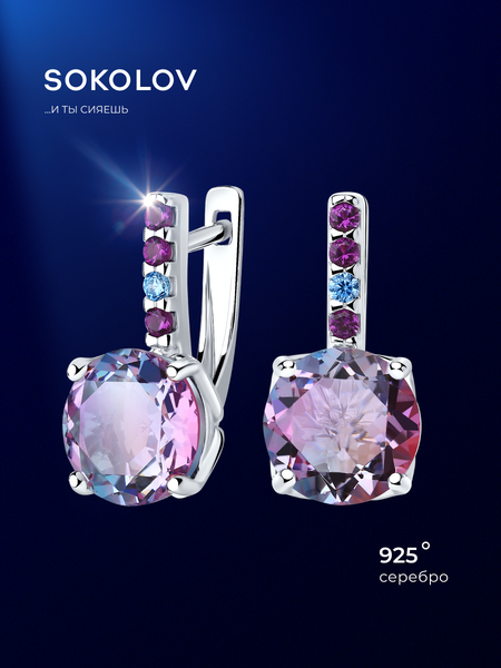 Серьги серебряные женские 925 пробы SOKOLOV, ювелирные украшения из серебра с камнями ситаллами и фианитами это не только великолепное украшение, но и настоящий символ элегантности и стиля. Идеально подходящие для каждодневного использования, они также великолепно смотрятся в вечернем образе. Вставки из камней в серебряном ювелирном украшении придают серьгам особую привлекательность и изысканность. Сережки из серебра 925 пробы обладают изысканным дизайном и высоким качеством. Благодаря искусной обработке, эти серебряные серьги женские сохраняют свою форму и блеск даже при длительной носке. Удобный и надежный замок позволяет фиксировать серебряные сережки на ухе, даже при активном образе жизни. Вы можете быть уверены, что эти серьги из серебра 925 будут оставаться на своем месте, обеспечивая максимальный комфорт и уверенность. Ювелирные украшения комплектуются с подарочной упаковкой, серьги из серебра идеально подходят для подарка любимой женщине и девушке, девочке на день рождения, 8 марта, день всех влюбленных или любой другой повод. Они прекрасно дополнят любой стиль и одежду, добавляя нотку изысканности и шарма. Соколов известный ювелирный бренд, предлагающий широкий ассортимент ювелирных изделий, выполненных из серебра 925 пробы. Внимание к деталям и качеству особенности, которые делают эти серьги неповторимыми и соответствующими самым высоким требованиям. Вес товара, указанного в карточке, является средним и может отличаться от фактического. Значение веса на фото и в характеристиках являются примерными и могут отличаться от фактического. Чтобы украшение радовало Вас своей красотой бесконечно долго, рекомендуем избегать попадания на него агрессивных химических и парфюмированных средств. Гарантийный срок для ювелирных изделий составляет 6 календарных месяцев, и исчисляется со дня передачи товара потребителю.
