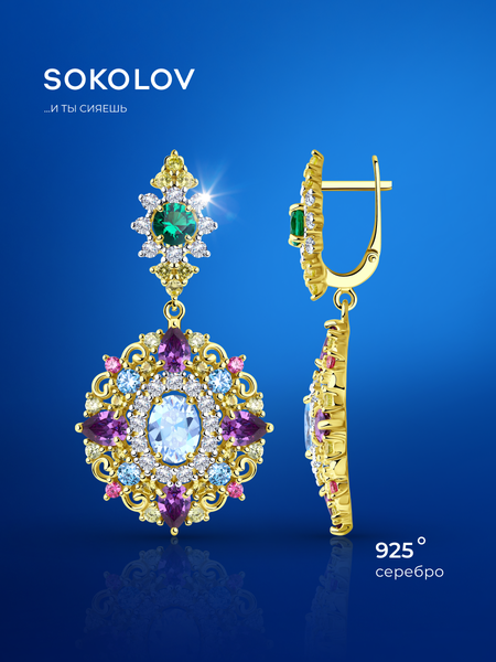 Серьги длинные женские серебро 925 пробы SOKOLOV, ювелирные украшения серебряные с камнями фианитами это не только великолепное украшение, но и настоящий символ элегантности и стиля. Идеально подходящие для каждодневного использования, они также великолепно смотрятся в вечернем образе. Вставки из камней в серебряном ювелирном украшении придают серьгам особую привлекательность и изысканность. Сережки из серебра 925 пробы обладают изысканным дизайном и высоким качеством. Благодаря искусной обработке, эти серебряные серьги женские сохраняют свою форму и блеск даже при длительной носке. Удобный и надежный замок позволяет фиксировать серебряные сережки на ухе, даже при активном образе жизни. Вы можете быть уверены, что эти серьги из серебра 925 будут оставаться на своем месте, обеспечивая максимальный комфорт и уверенность. Ювелирные украшения комплектуются с подарочной упаковкой, серьги из серебра идеально подходят для подарка любимой женщине и девушке, девочке на день рождения, 8 марта, день всех влюбленных или любой другой повод. Они прекрасно дополнят любой стиль и одежду, добавляя нотку изысканности и шарма. Соколов известный ювелирный бренд, предлагающий широкий ассортимент ювелирных изделий, выполненных из серебра 925 пробы. Внимание к деталям и качеству особенности, которые делают эти серьги неповторимыми и соответствующими самым высоким требованиям. Вес товара, указанного в карточке, является средним и может отличаться от фактического. Значение веса на фото и в характеристиках являются примерными и могут отличаться от фактического. Чтобы украшение радовало Вас своей красотой бесконечно долго, рекомендуем избегать попадания на него агрессивных химических и парфюмированных средств. Гарантийный срок для ювелирных изделий составляет 6 календарных месяцев, и исчисляется со дня передачи товара потребителю.