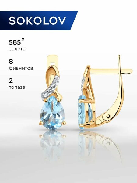 Серьги золотые женские 585 пробы SOKOLOV, ювелирные украшения с камнями топазом и фианитами это изделие, которое подчеркнет вашу индивидуальность и придаст вам особый шарм. Бренд SOKOLOV гарантирует высокое качество и безупречный дизайн каждой пары серег. Сережки женские золотые - это очень элегантные украшения, которые прекрасно подходят для вечерних выходов или повседневных образов. Их стильный дизайн и блеск камня привлекают внимание окружающих и добавляют особую изысканность вашему образу. Золотые серьги 585 женские обладают особой прочностью и стойкостью. Цвет золота придает серьгам особую теплоту и роскошь. Благодаря своей универсальности, необычные серьги подходят для любого возраста и стиля. Дизайнерские сережки отлично смотрятся как на молодых девушках, подростках, так и на женщинах более зрелого возраста. Удобный замок на золотых серьгах Соколов обеспечивает надежное крепление сережек на месте даже при активном движении. Вы можете быть уверены, что ваше украшение останется на месте, даже при ежедневном ношении. Ювелирные изделия из золота давно завоевали популярность у женщин и девушек. Это не только стильный аксессуар, но и символ роскоши и успеха. Минималистичные украшения из красного золота 585 пробы бренда SOKOLOV, вы подчеркнете свою индивидуальность и элегантность. Женские серьги из красного золота 585 пробы отличный выбор для всех девушек и женщин. Они будут стильным дополнением к вашему гардеробу и подчеркнут ваш неповторимый стиль. Украшения комплектуются с подарочной упаковкой, идеально подходят для подарка любимой женщине и девушке, девочке на день рождения, 8 марта, день всех влюбленных или любой другой повод. Вес товара, указанного в карточке, является средним и может отличаться от фактического. Значение веса на фото и в характеристиках являются примерными и могут отличаться от фактического. Чтобы украшение радовало Вас своей красотой бесконечно долго, рекомендуем избегать попадания на него агрессивных химических средств. Гарантийный срок для ювелирных изделий составляет 6 календарных месяцев, и исчисляется со дня передачи изделия потребителю.