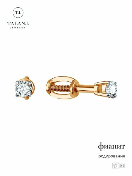 Классические золотые пусеты с фианитом из красного золота 585 пробы с родированием. Вставки: бесцветные фианиты огранки круг 2,5 мм. 2 шт. Золотые серьги гвоздики - классика, добавляющая утонченность в повседневный стиль и вечерний образ. Серьги пусеты - отличный подарок любимой девушке, маме, себе. Винтовой замок отличается надежностью и возможностью регулировки длины гвоздика. Ювелирное украшение из красного золота - замечательный презент на юбилей. Подлинность изделия подтверждается: пробирным клеймом (пробой), именником производителя, биркой и пломбой завода. Обратите внимание: фактический вес изделия может отличаться от среднего, указанного в характеристиках. О заводе: Санкт-Петербургский Ювелирный Завод "TALANT" - это крупный производитель по-настоящему качественной ювелирной продукции.