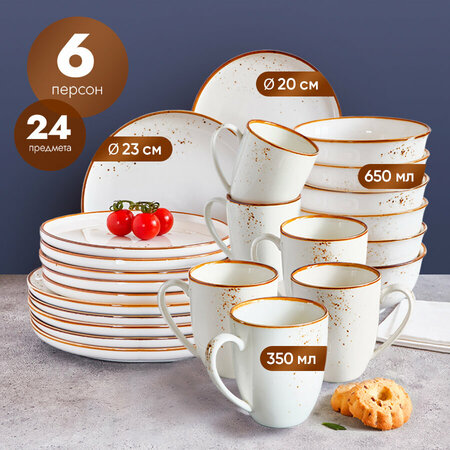 Тарелка 20 см 6 шт, тарелка 23 см 6 шт, салатник 650 мл 6 шт, кружка 350 мл 6 шт