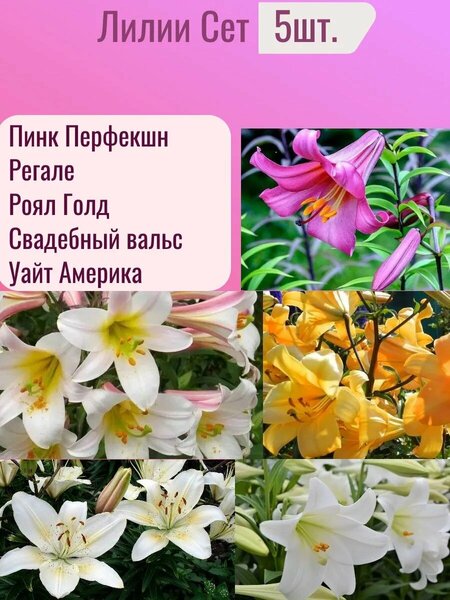 Сет из лилий это 5 разных сорта очаровательных цветов, которые непременно будут радовать ваш глаз в период цветения с июня по август. Цветы с необычным ярким, но в то же время и нежным окрасом. Посадка лилий в открытый грунт может равно осуществляться как весной, так и осенью – а точные сроки подбираются в зависимости от сорта растения и климата вашего региона. Так, в средней полосе начинать осеннюю посадку луковиц лилий можно уже с начала сентября, а завершать – в октябре и даже первых числах ноября (в южных регионах). Сажать лилии раньше не стоит – есть вероятность, что в теплой почве они сразу начнут расти, что нежелательно. Но и в замерзающую землю сажать растения не стоит – не выживут. Ориентироваться осенью следует на среднесуточную температуру, которая должна установиться на границе около 10 °С, не выше: луковичные отлично укореняются при низких положительных температурах. Луковицы подавляющего большинства сортов садовых лилий неплохо переносят морозы в почве, а в апреле активно пускаются в рост и чувствуют себя даже лучше собратьев, посаженных весной, которые зачастую бывают слишком нежными и хрупкими. Первыми высаживают лилии с самым коротким периодом покоя, чтобы они успели прижиться до наступления холодов, затем – американские гибриды, в самые поздние сроки можно высаживать неприхотливые и морозостойкие азиатские лилии. Трубчатые же, восточные и длинноцветковые гибриды в наших широтах рекомендуется сажать исключительно весной или вообще выращивать в оранжерее. В первую очередь вы должны выбрать здоровый и качественный посадочный материал.