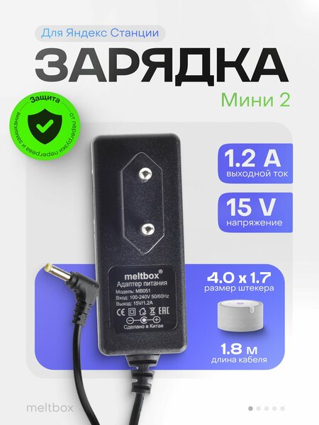 Обеспечьте надежное и безопасное зарядное устройство для вашей Яндекс Станции с адаптером питания от бренда MELTBOX 15V 1.2A. Этот компактный блок питания совместим с моделями Яндекс Станции Мини 2.0 с часами и без, обеспечивая стабильное напряжение и защиту от повреждений. Компактный размер и длина кабеля (180 см.) делают использование этого адаптера максимально комфортным. Выберите качественный адаптер питания для Яндекс Станции 15V 1.2A и наслаждайтесь кристально чистым звуком вашей колонки без перебоев!