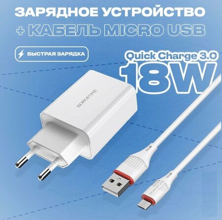 Достоинства:Все работает. Быструю зарядку поддерживает. Недостатки:Пока не найдено. Комментарий:Покупаю уже не в первый раз.Радует невысокая стоимость и отсутствие проблем при зарядке.Самая первая зарядка Borofone куплена мной 3 с лишним года назад и работает по сей день.Так что к покупке рекомендую.