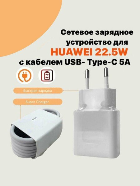 Сетевое зарядное устройство для Huawei c USB входом Max 22,5W в комплекте с кабелем 5a