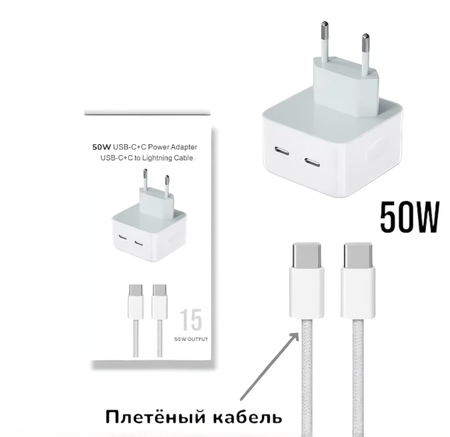 Зарядное устройство 50 W для iPhone, iPad, AirPods и других устойств / кабель USB Type-C / быстрая зарядка для айфона